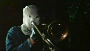 Adding to the horror of the film, Charles Pierce uses aspects of the real life attacks for “The Town That Dreaded Sundown,” and thus these scenes are still genuinely horrific but were severely augmented for the film as well. Murder victim Linda Mae Jenkins for example, is found having been “bitten and chewed on,” but that was not the case in the original killing it was based on and was an odd and unsubstantiated choice for Pierce to use that additional act to further his villain’s sadistic qualities. Where Pierce takes even more substantial liberties is in the death of the character, Peggy Loomis, who is murdered when “the phantom” ties a knife to the retractor of her trombone and kills her in a similar fashion as Mark Lewis, Powell’s “Peeping Tom” killer who uses a knife mounted to a camera as his weapon of choice. In the film, Peggy is assaulted with her boyfriend Roy while amorously parking, while the actual pair of Betty Jo Booker and Paul Martin were just friends and were shot to death. Multiple lawsuits were eventually brought against the film’s producers on a variety of issues relating to the unflattering depiction of some of real life victims. Even a lawsuit was started by the city of Texarkana against the ad campaign for the film which had as its tagline, “In 1946 this man killed five people…today he still lurks the streets of Texarkana, Ark.” Allthough director Pierce worked to remove the “still lurks” part of the tagline, it was still very present in the posters for the film.