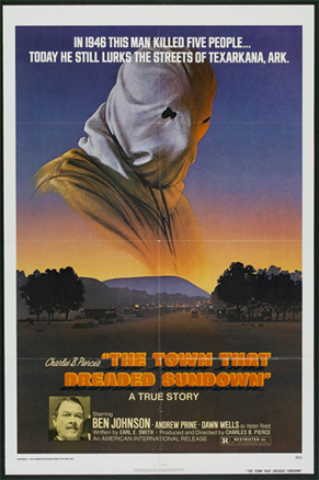 Such was the case in 1976 when American International Pictures decided to premiere director/producer Charles B. Pierce’s drive-in film, “The Town That Dreaded Sundown” in Texarkana, Arkansas, the very town where some thirty years earlier, a masked man began slaughtering people in what would be known as “phantom attacks” of mostly young lovers in the dead of night. Family and friends of the victims were all still very much alive in 1976, and so a very powerful magnifying glass was held up to construction of characters and scenarios of director Pierce’s film. A film that is widely considered, along with Bob Clarke’s “Black Christmas,” as one of the earliest examples of the film genre we now know as the slasher film.