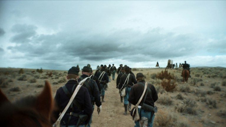 Throughout his career directing hybrid-documentaries, Minervini, an Italian by birth who has resided in Southern US communities for decades, has taken his combinatorial objective outsider and adopted insider perspective to examine America’s contemporary identity by focusing on personal stories within our disenfranchised communities to reveal how regional culture, history, and government have shaped the challenges of today. With his newest film, The Damned, his first fiction feature and one that earned him the Best Director prize in the Un Certain Regard section of last year’s Cannes Film Festival, Minervini takes aspects of the desperation inherent in his documentary subjects and their settings and goes back in time to 1862. Set during the early years of the Civil War, The Damned follows a small group of otherwise hapless and mostly indigent Union infantrymen who are mysteriously dispatched to patrol the Northwestern part of the country to protect the land against an undefined foe. Factually, the US Army was sent to that region to secure land during the Gold Rush, and facets of that particular deployment are only hinted at in one scene, leaving the viewer to suppose otherwise. But regardless, as Minervini’s film progresses, the need for historical accuracy erodes away along with any need to adhere to the conventions of the war genre in order to allow The Damned’s philosophical, experiential narrative to flourish.