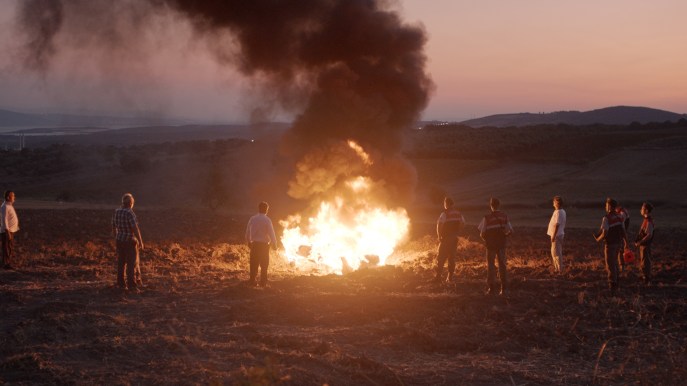 A: That line came about from a motivation for the actor. You see, these are all non-professional actors. Baris Bilgi, who plays Hay, just a few months before shooting the film, was working as security guard in an apartment building. The characters were all played by my friends and family, so when Baris asked me, “Why don’t I ask my friends to go fishing?,” I said, “Sure,” because it was part of the process, since there was no script for him to reference. None of the actors in this film actually had to read a script. We would all just meet in the morning on location, and I would give them direction like, “Now, let’s cut down this tree,” and they would all say, “Sure, O.K.” We bonded so well because I started working with the actors three months before shooting, but I never actually rehearsed a scene with them because I wanted their natural reactions to come through.