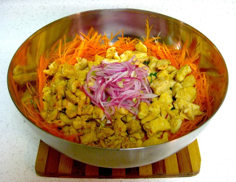 Consequently, in this week’s recipe, I made my version of goi ga with larb influences. It’s a light dish that is surprisingly filling because of all of the fresh veggies. Perfect for a picnic, my version of goi ga is bright, colorful, and filled with plenty of different, yet complementing flavors.