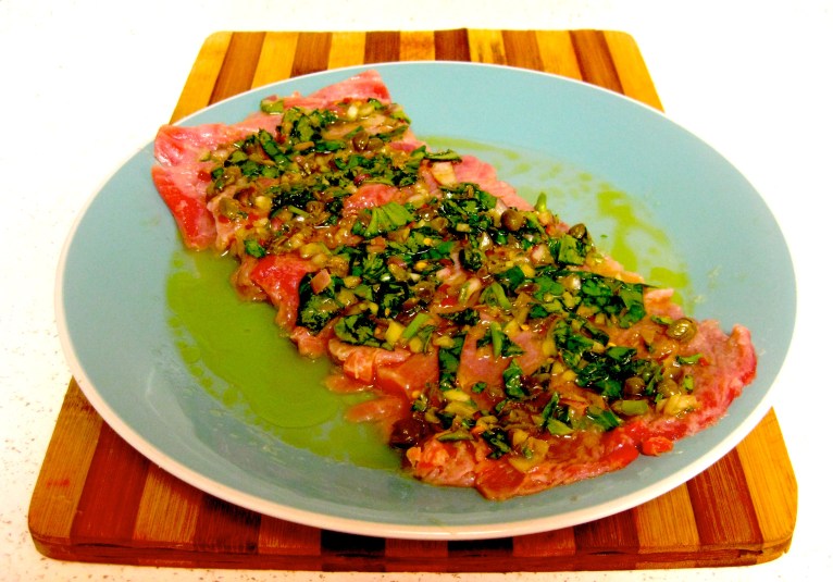 Generoso been under the belief that his beloved carpaccio was a Sicilian dish, as many of the best dishes of the fish variety emanate from Sicily, but there is enough evidence that Tuna Carpaccio first appeared in a Venetian cafe sometime in the 16th century. Regardless of its true origin, this dish has been changed a million times for a million different tastes. Most Italian dishes are contigent on getting the freshest and finest ingredients that you can find, and Generoso’s take on tuna carpaccio may be the best example of a Italian dish that demands the best ingredients. You will need about 8 ounces of sushi-grade tuna (nothing else will do), extra virgin olive oil, one shallot, two ounces of fresh basil, two large garlic cloves, a half glass of white wine, two large lemons, and two ounces of capers.  The tuna is “cooked” like ceviche using citrus so the time from prep to plate is short, about 30 minutes. A good baguette will be a welcome addition when serving this.