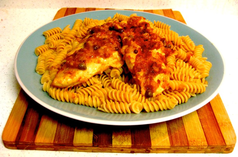 With only a few more weeks of summer left, Generoso decided to end the week with the bright, delicious taste of the classic dish, chicken scallopini. Super easy and quick to make, this chicken (pork or veal is fine as well without altering the other ingredients in the recipe) with its light summery sauce should make any hot night come alive. You will need 24 oz of chicken breast, 1/4 cup of white wine, 3/4 cup of fresh lemon juice, 1/2 cup of chicken broth, 2 tablespoons of capers, olive oil, breadcrumbs, salt, pepper, and rotini pasta (or any non-thread pasta of your choosing).  Please let us know how yours turns out and enjoy!