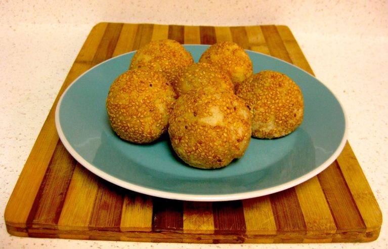 For anyone who has had Banh Cam (or Banh Ran if your family is from northern Vietnam), you know that it can have different fillings depending on the bakery you purchase it from. If you buy Banh Cam in a Chinese bakery, it is filled with red bean paste. If you buy it in a Vietnamese bakery, it can be filled with a sweet mung bean paste. Occasionally, you’ll even see it with a coconut mung bean mix inside.